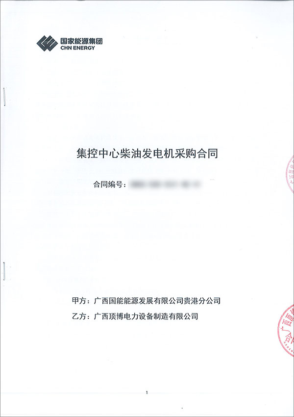 2021年6月7日,廣西國能能源發展有限公司貴港分公司接受我司為集控中心柴油發電機采購項目的報價,遵循平等、自愿、公平和誠實信用的原則,共同達成并簽訂集控中心柴油發電機采購合同,我司將按照合同約定,為貴公司提供全新300KW玉柴柴油發電機組設備一套,并免費提供安裝、調試等服務。